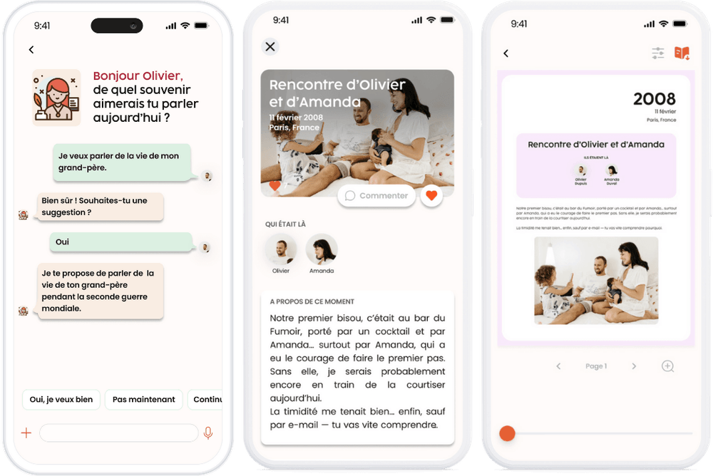 L’un des atouts forts de Remembr : tout ce qui est partagé peut être transformé en livre imprimé ou en livre numérique. C’est la version moderne de l’album photo de nos parents. Mais enrichi de : dates, lieux, récits, voix, témoignages, photos d’époque. Un objet précieux. Un cadeau qui traverse le temps. Un héritage que l’on lègue.